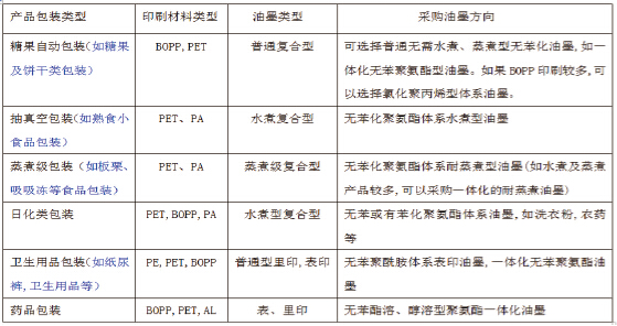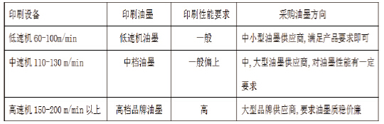 表一:不同結(jié)構(gòu)適宜的油墨類型及采購方向