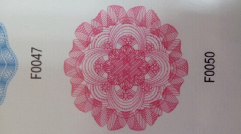 版紋防偽的原理在于利用極細小的線和點構成規則或不規則的線型圖案和底紋,并由卷花線紋、特殊隱含效果、縮微字、浮雕圖案、劈線圖案、特殊網目等構成安全底紋。底紋的寬度、角度變化多端,普通的版紋軟件和彩色復印機無法精確仿造,更重要的是要把這些精細的版紋制作在凹印版上,只有通過激光雕刻才能實現,而目前國內的激光雕刻凹版全部為運城制版集團擁有,這個工藝技術壁壘造假者根本無法越過。