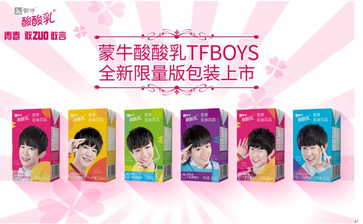 蒙牛酸酸乳借勢TFBOYS兩周年粉絲見面會發布TFBOYS全新限量版包裝,相信定會引發粉絲新一輪的擁簇與搶購,值得期待!
