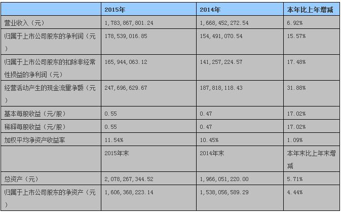 報告期,公司秉承“穩中求進、健康發展”的基調,以市場為重心,以技改為抓手,積極主動,搶抓機遇,全年實現營業收入178,386.78萬元,較去年同期增長 6.92%,實現歸屬于母公司所有者的凈利潤17,853.90萬元,較去年同期增長15.57%。