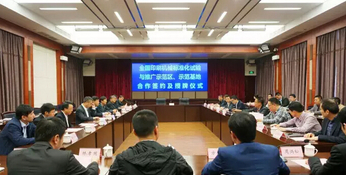 4 月22日下午,全國首個印刷機械標準化試驗與推廣示范區(qū)、示范基地正式落戶浙江省平陽縣。在全國印刷機械標準化技術(shù)委員會(以下簡稱標委會)與平陽縣人民政府簽約授牌儀式上,中國印刷及設(shè)備器材工業(yè)協(xié)會、全國印刷機械標準化技術(shù)委員會、平陽縣政府、溫州市印刷行業(yè)協(xié)會的主要領(lǐng)導(dǎo),以及平陽縣主要印刷機械企業(yè)代表等共同見證了這一面向全國印刷機械行業(yè)的開創(chuàng)性舉措。