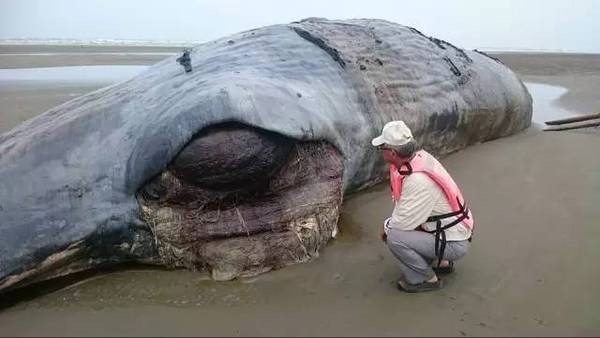 ▽死亡的鯨魚,解剖后發現肚子里滿是塑料袋