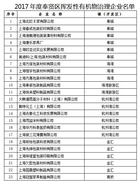 日前,上海市奉賢區環保局印發《關于開展2017年度揮發性有機物治理工作的通知》。根據通知,2017年年底前,上海奉賢實施VOCs治理企業50家,全面完成VOCs污染治理。