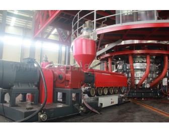金明研制的5層共擠真空鑄造膜專用吹塑機組主要用于生產PA/TIE/PE/TIE/PA結構的真空鑄造用高溫薄膜,最大幅寬達到12m,使用溫度分別為150℃,170℃,190℃,超出了普通聚乙烯和常見的EVA鑄造用薄膜的耐熱溫度,這種薄膜通常的內、外層PA厚度占總厚度的50%以上,利用PA的阻氧性和耐溫性,以及較高的機械性能等特點。