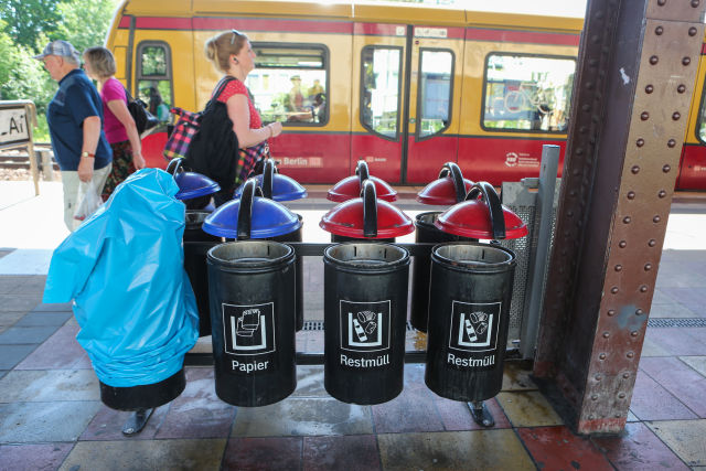 這是德國(guó)柏林一個(gè)地鐵站的垃圾桶。(新華社記者張帆攝)