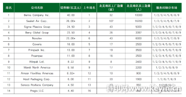 近兩年,北美地區軟包裝市場一直動蕩不安,兼并和收購事件頻繁發生,比如2015年Ampac Holding,LLC與Prolamina Corporation合并,成立ProAmpac,隨后ProAmpac又收購了cei(Coating Excellence International)等,使得北美地區銷售額前25名軟包裝企業榜單換手率居高不下。