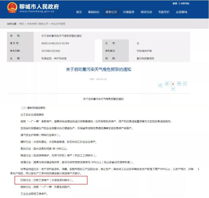 近日,很多地區紛紛發布了重污染天氣橙色預警,并發布文件要求啟動應急響應措施,其中包括對工業企業嚴加管控,要求容易造成污染的印刷行業落實停、限產措施。預計2019年環保力度還會進一步加大,對此工廠老板表示:苦不堪言!