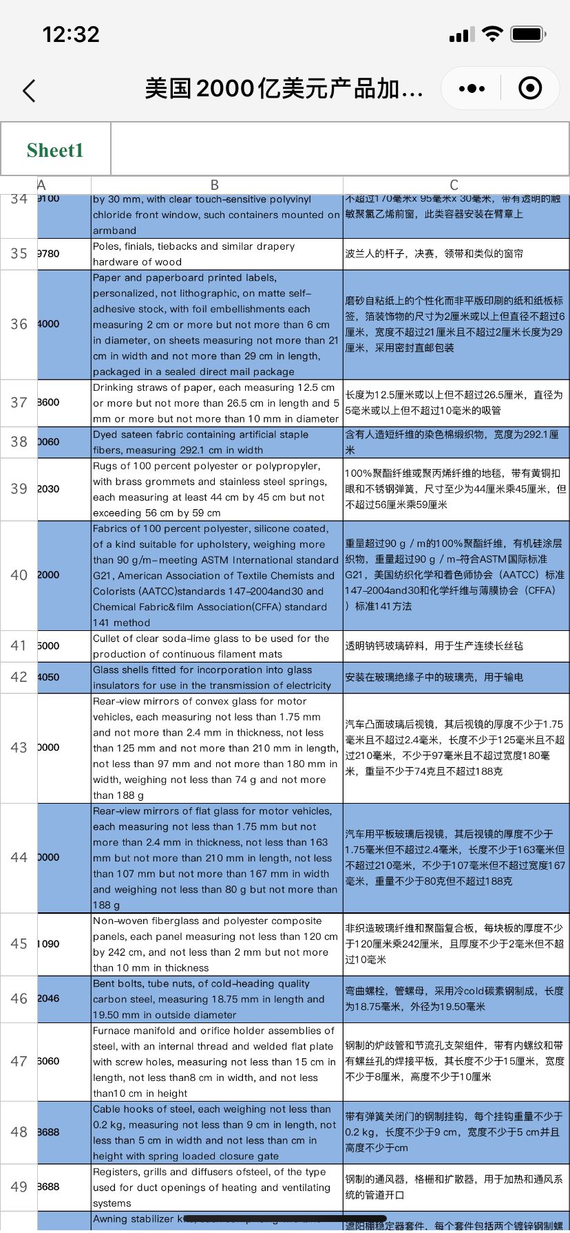 針對2000億第8批關(guān)稅豁免通知及清單 ▲美國貿(mào)易代表辦公室公告 公告及涉及產(chǎn)品下載地址:https://ustr.gov/sites/default/files/enforcement/301Investigations/%24200_Billion_Exclusions_Granted_January_31.pdf ▲第19批2000億排除清單部分截圖