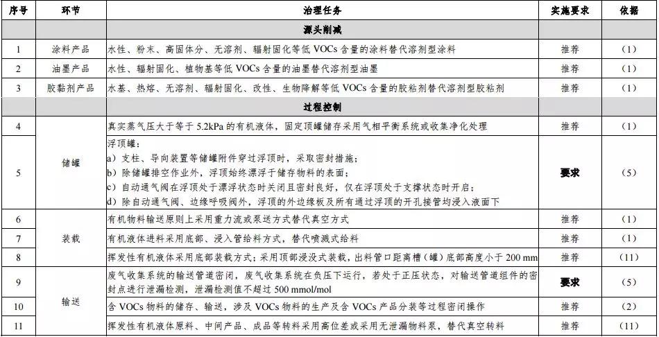 涂料油墨膠黏劑行業(yè)VOCs治理任務(wù)對照表