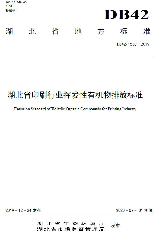 湖北省印刷行業VOCs排放標準發布!7月1日實施!