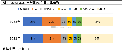 國內產業鏈一體化來看,我國PC產能自雙酚A原料開始完善的比例提升至80.8%,較2022年上漲1.0個百分點。
