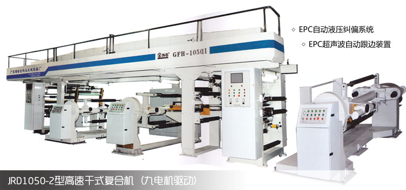 整機:JRD1050-2型系列干式復合機,全自動高速復合,采用交流變頻閉環矢量驅動,收放卷、復合、涂膠、烘箱傳動采用最先進的高精密全數字微電腦閉環同步操控;