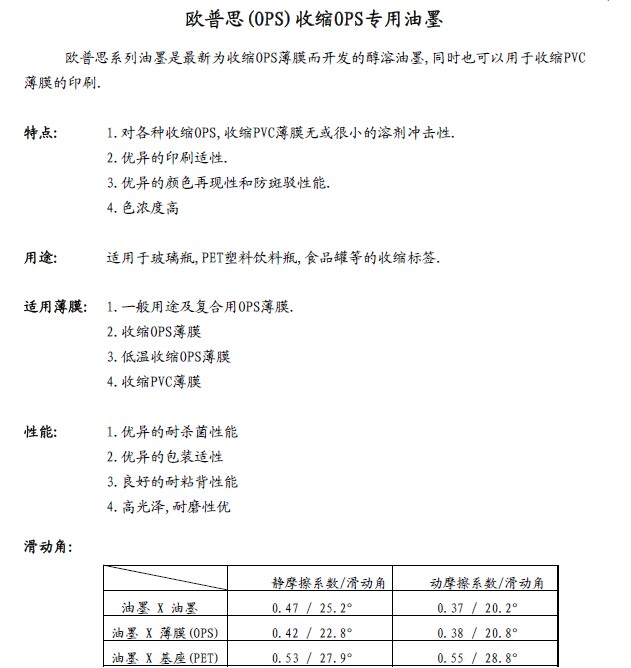 OPS收縮OPS專用油墨